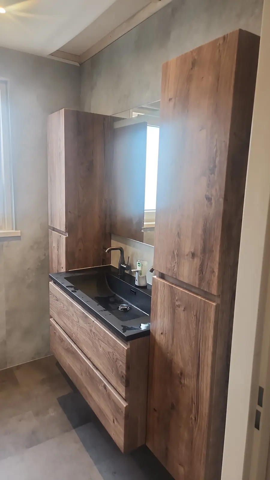 Op 18 oktober 2025 voltooiden we een stijlvolle badkamerrenovatie. De nieuwe drempelloze inloopdouche met antislipvloer biedt maximale veiligheid en comfort. Samen met het zwevende toilet en de luxe marmerlook wandbekleding creëert dit een moderne, rustgevende uitstraling. Een veilige en prachtige badkamer voor jarenlang zorgeloos genieten.