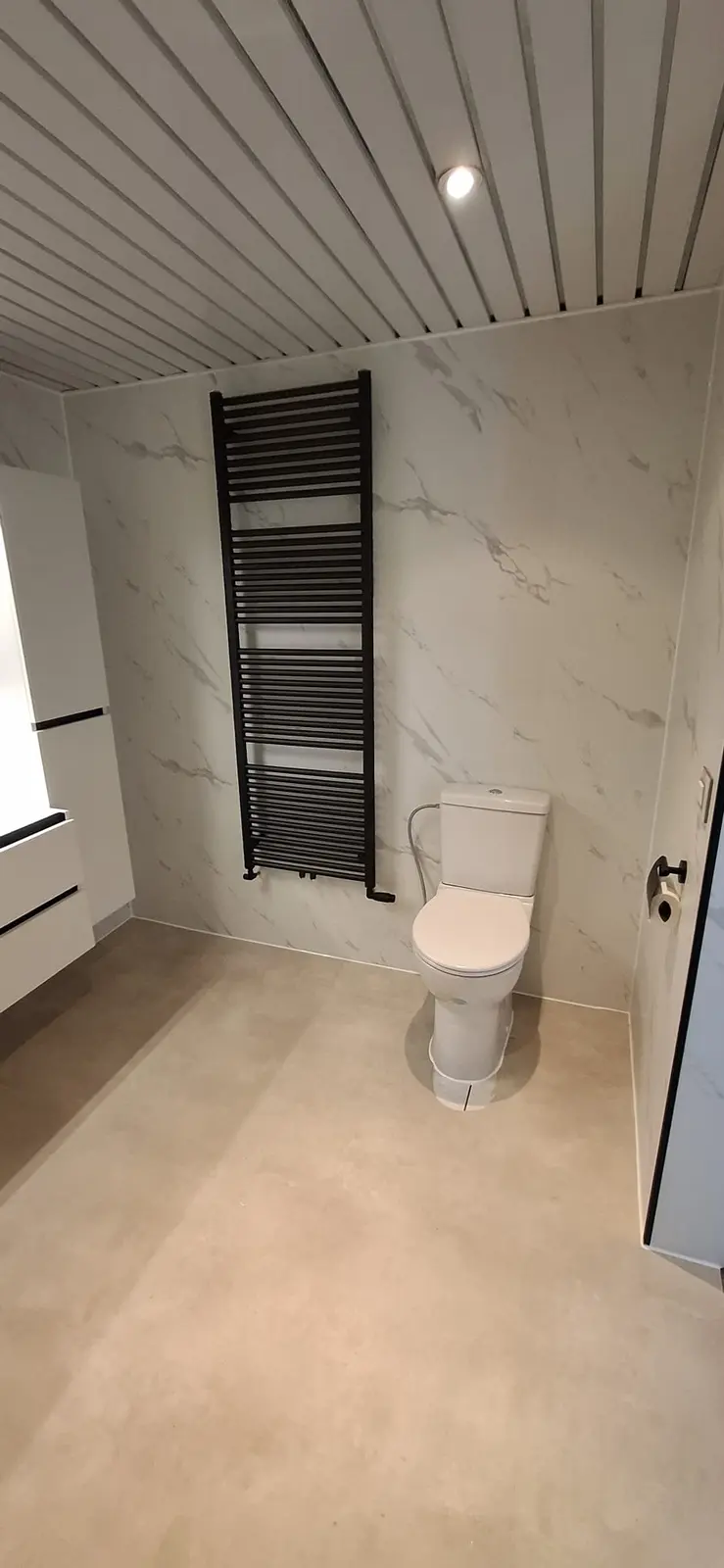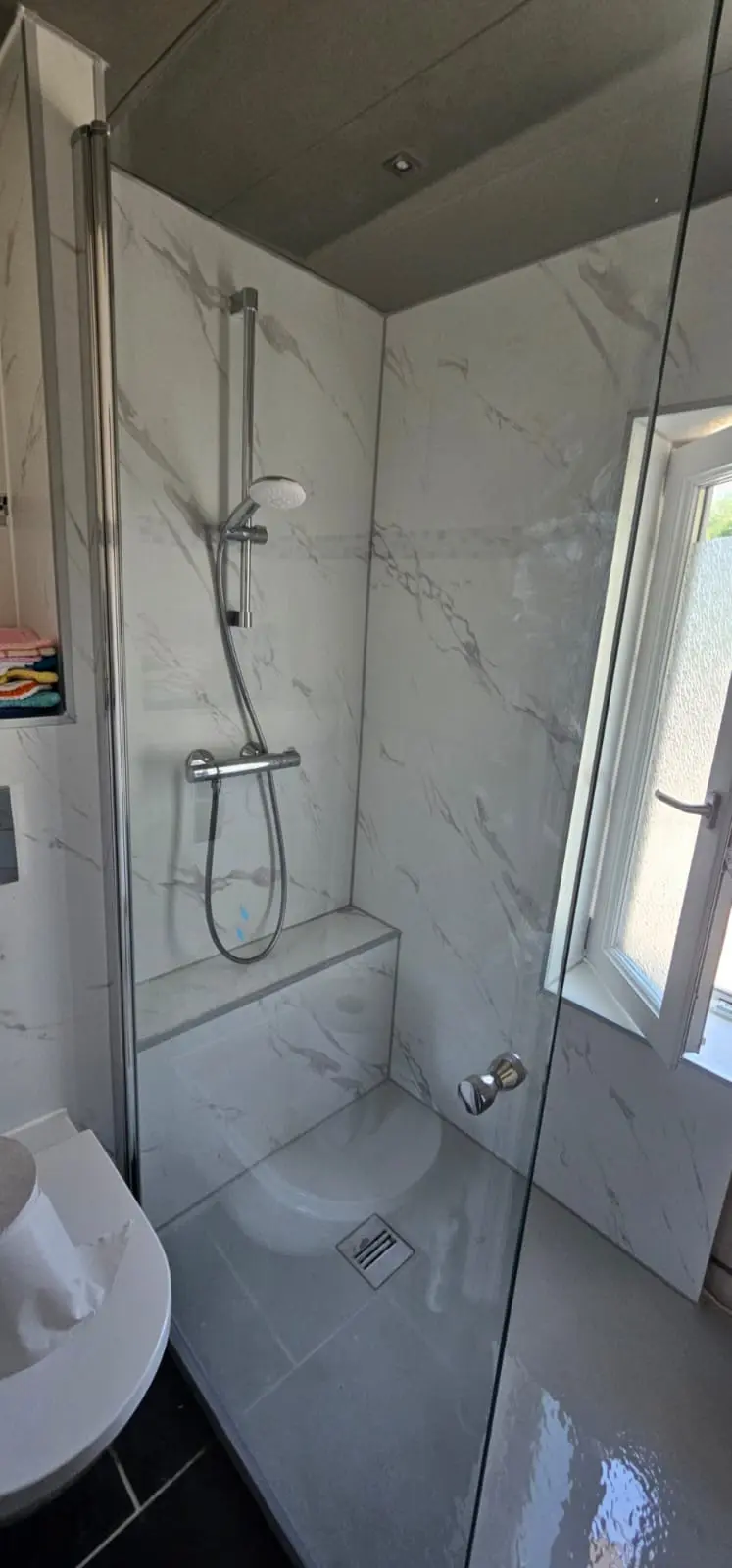 Kies uit premium Italiaans keramiek, moderne zwevende toiletten, dubbele wastafelmeubels en mat-zwarte of geborsteld koperen kranen. Het is úw droombadkamer, maar doordrenkt met de veiligheidsnormen waar SaniSafe bekend om staat: drempelloos en slipvrij.