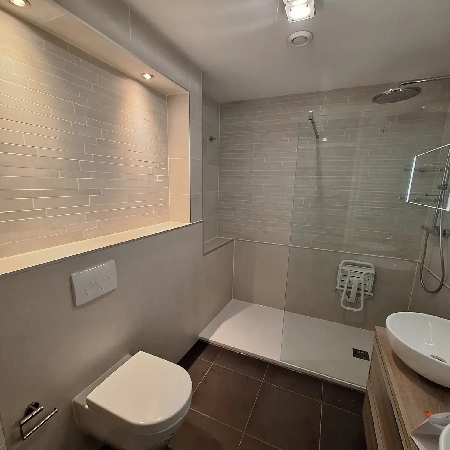 Waterdichte laag, tegelwerk, sanitairinstallatie en verlichting worden vakkundig aangebracht.